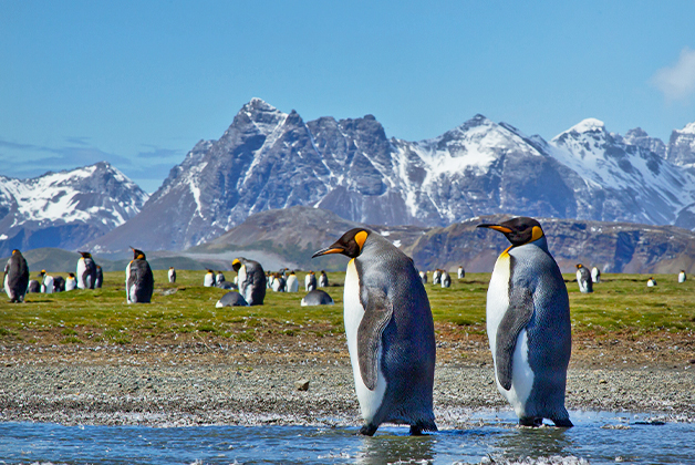 South Georgia bursts with life and history. Home to bustling colonies of king penguins and elephant seals, the island also offers a glimpse into its rugged past, with abandoned whaling stations and the final resting place of explorer Sir Ernest Shackleton.